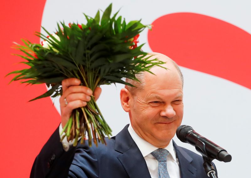 [ベルリン 27日 ロイター] – 26日投開票されたドイツ連邦議会選挙(総選挙)を巡り、暫定結果で僅差の勝利となった中道左派の社会民主党(SPD)は27日、緑の党と自由民主党(FDP)との3党連立政権の樹立に向けた手続きを開始し、2005年以来初めて政権を主導すると表明した。
