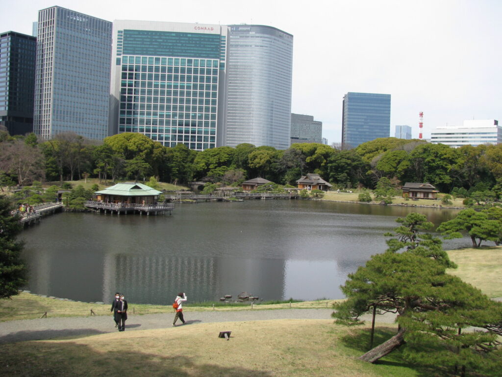 この庭園は、江戸期には徳川将軍家の鷹狩の場所であり、浜御殿と呼ばれました。実は、海上から攻めてくる敵を討つため、江戸城の出城の機能ももたされていた場所です。
