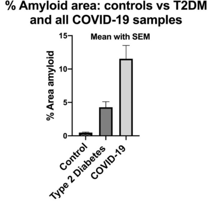 研究者らは、新型コロナ後遺症の人の血漿サンプルには、トリプシン処理(酵素がタンパク質を分解した後の細胞解離)後も、線維素溶解に抵抗性の大きな異常(アミロイド)沈着(微小血栓)があることを発見した(対照実験で対照群や糖尿病患者の血漿と比較した場合)。