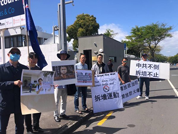 今月10日、ニュージーランドのオークランドにある中国領事館の前でも「中国のファイアウォールを壊せ運動」を声援する集会が開かれた。