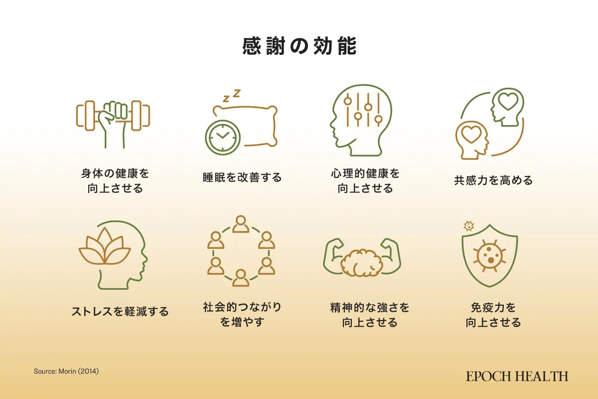 「感謝は、ポジティブな感情を自然と持続させる仕組みを作り出します。感謝を実践すればするほど、気分が良くなり、短期的にも長期的にもその効果が得られます。そして、脳はこうした快感ホルモンの分泌を楽しむようになり、さらに感謝を感じることを促します。こうして感謝の実践が習慣化し、私たちの生活の一部となるのです」