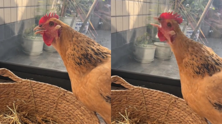 「きっと前世は人間」と多くの人が信じているという話題の雌のニワトリはなんと、人の言葉を理解し、犬の泣き声もマネできるというのだ。
