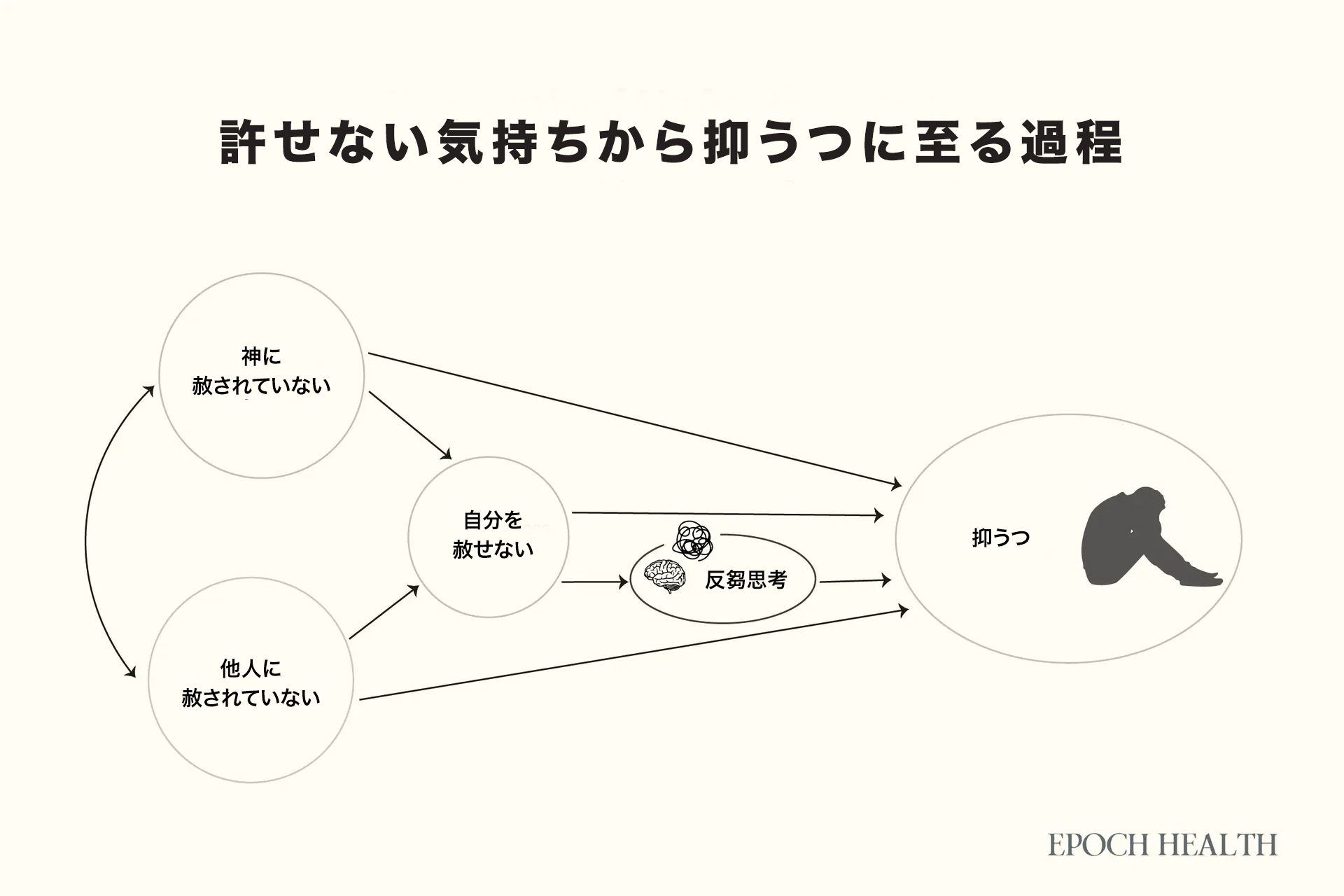 一方で、他人を許せないという状態は、心理的に大きな悪影響をもたらします。反芻思考(過去の出来事を何度も思い出して怒り続ける状態)や抑うつ症状の原因となるのです。