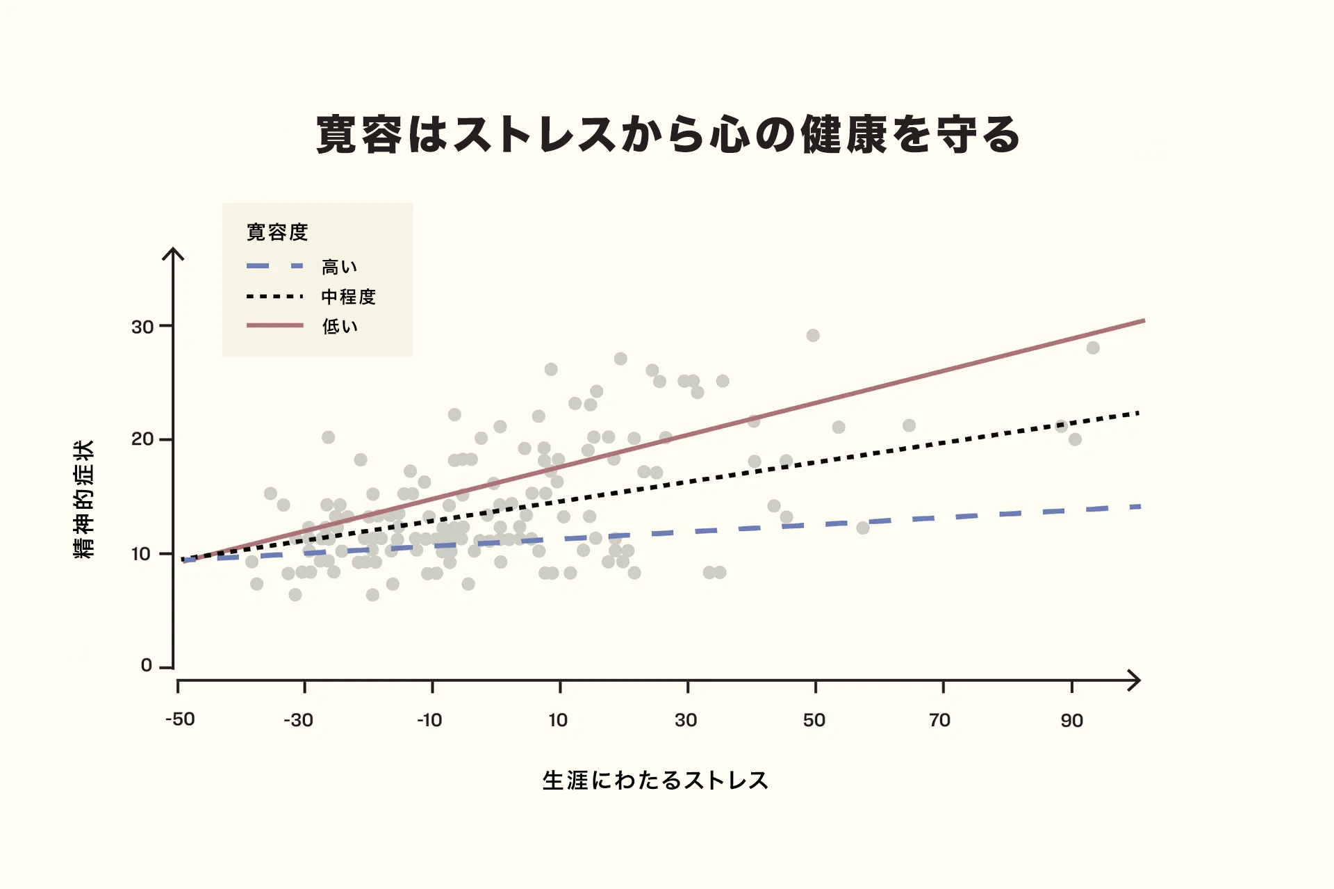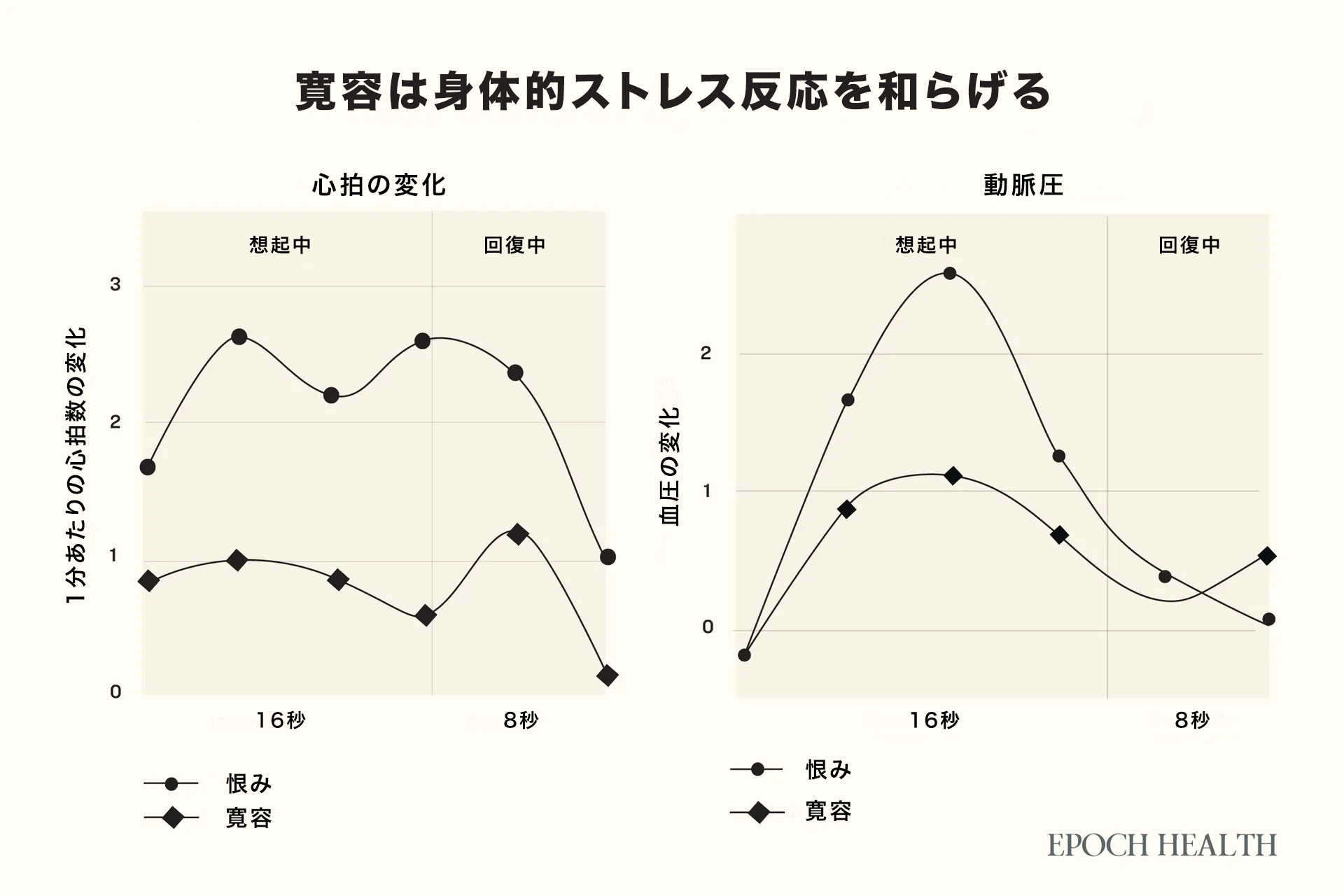 しかし、寛容の心を持った参加者には、こうした強い身体反応は見られませんでした。彼らの心拍数や血圧、顔の筋肉の緊張が明らかに低く、よりリラックスした状態だったのです。寛容の感情は、ストレスへの過剰な反応を抑え、「緩衝材」として働いていたのです。