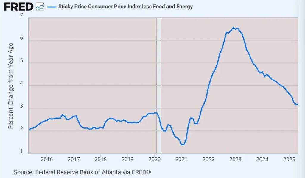 スティッキーCPIは前年比3.15%で、高めだが、ロックダウン後の最低値だ。