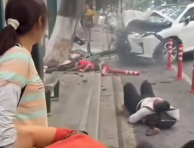 7月1日午前11時ごろ、広東省広州市の繁華街で、白い自家用車が突如バス停に突っ込む事件が発生した。現地の防犯カメラやドライブレコーダー映像によれば、車は左車線から急加速して右車線の路肩に乗り上げ、歩行者やバス停に並んでいた市民に向かって減速することなく突入した。