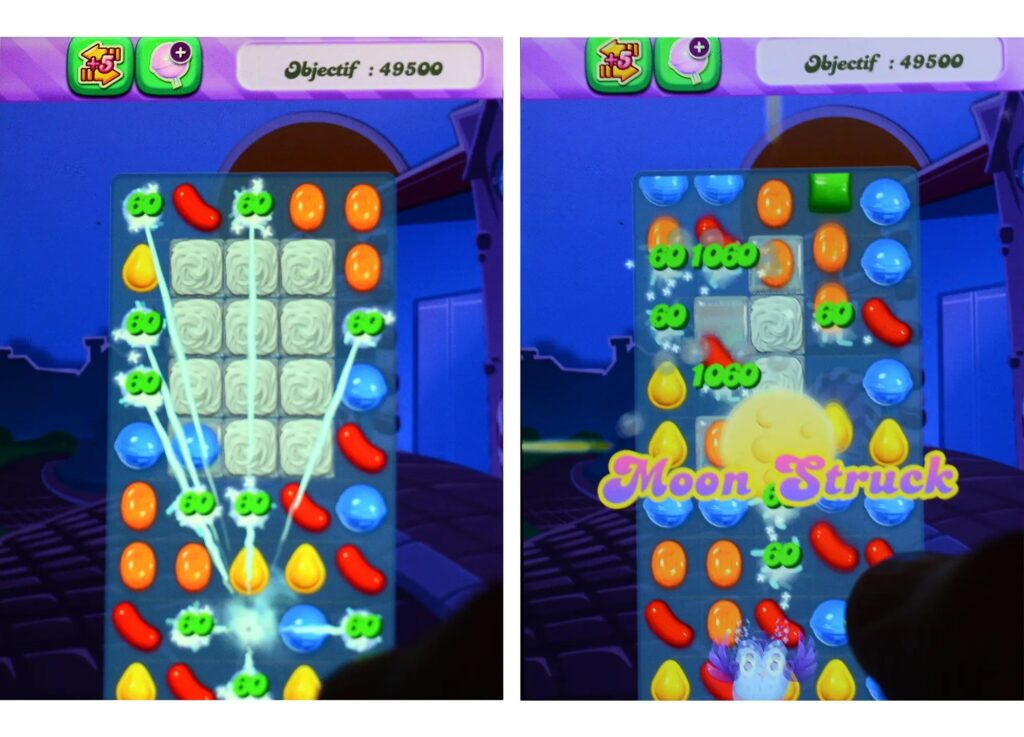 キャンディクラッシュでは、「ゲームジュース」は即時のフィードバックという形で現れます。正しい組み合わせを作ると、白い光がパッと光ったり、画面に褒め言葉が表示されたりするのです。(Gabriel Bouys/AFP via Getty Images)