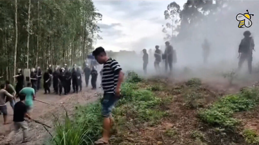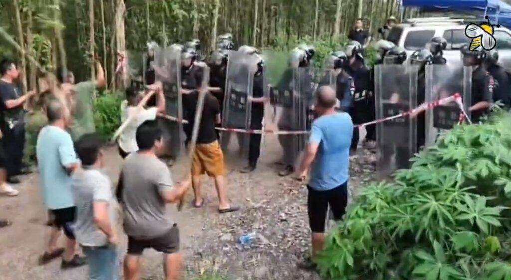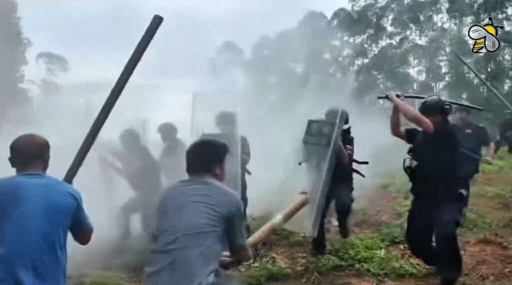 村民らは棍棒を手に必死に抵抗したが、警察側は盾や長棒、さらに消火器まで投入した。現場は修羅場と化し、頭部裂傷や背中の打撲などのけが人が続出し、血を流しながら病院へ運ばれる姿も確認された。