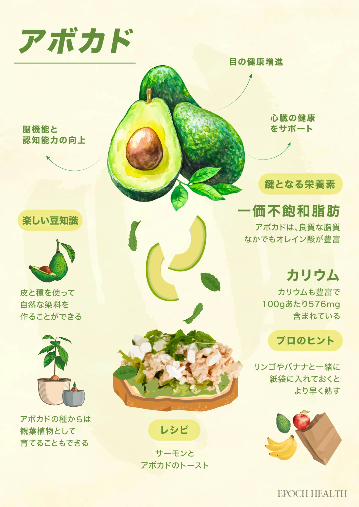 「アボカドの魅力は、流行のブランチ料理をはるかに超えています」と、登録栄養士のアマンダ・イズキエルド(Amanda Izquierdo)氏はエポックタイムズに語りました。「多くの研究が、どのようにアボガドが体全体の健康に貢献するかを探っています」