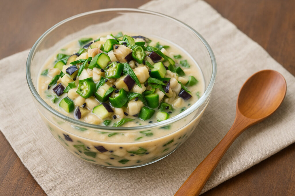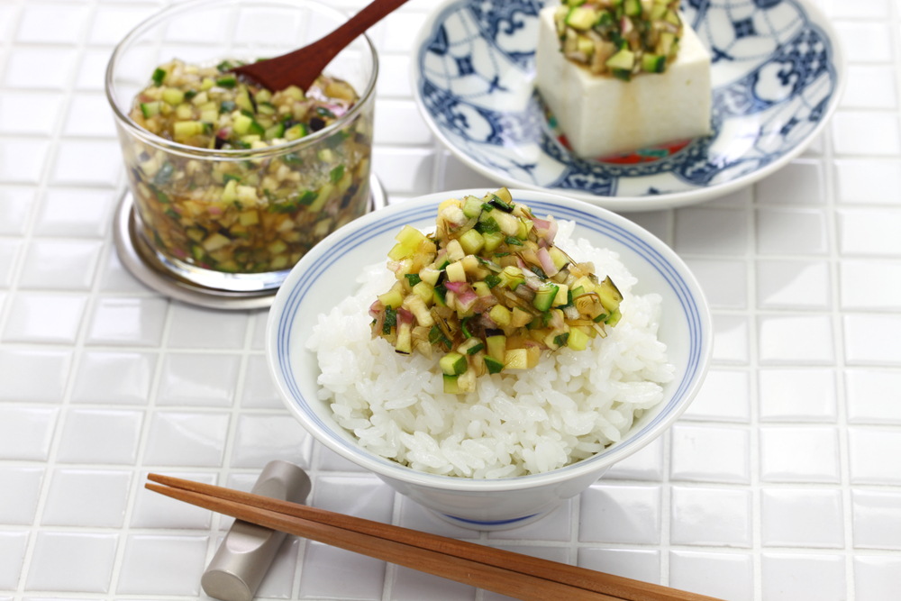 伝統的な「だし」は、きゅうり、なす、茗荷、青じそなどの旬の野菜を細かく刻み、しょうゆやだしで和えてご飯にかけるだけ。さっぱりとしていながら、一碗で食欲を呼び戻し、体力を回復させてくれる、まさに農家の知恵から生まれた養生食といえるでしょう。