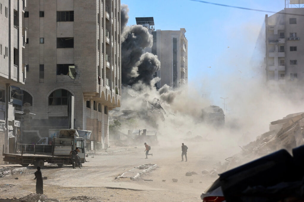 2025年9月13日、ガザ市タル・アルハワ地区でイスラエル軍が建物を攻撃し、その後、大きな煙が立ち上った。