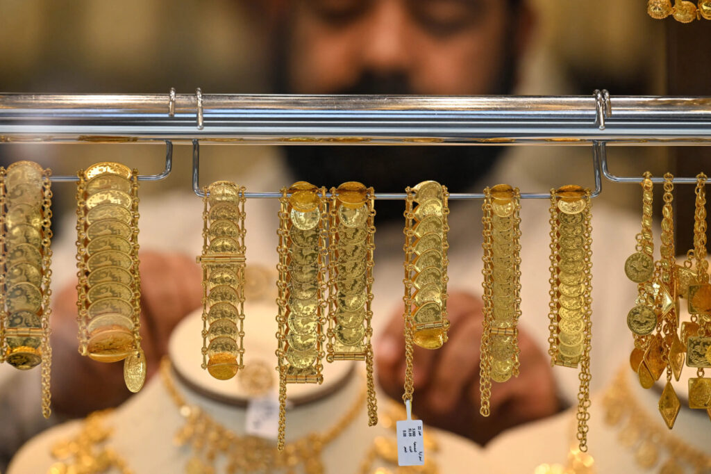クウェート市中心部の店舗で、クウェート人の宝飾店主が金製品を並べている。金価格は2025年9月時点で過去最高水準に近い値を維持している。現物価格は1オンスあたり約3,650ドル前後で推移し、年初来で約40%の上昇となっている。金価格は世界的な金融政策転換や地政学的不安を背景に、引き続き高水準で推移している状況だ。