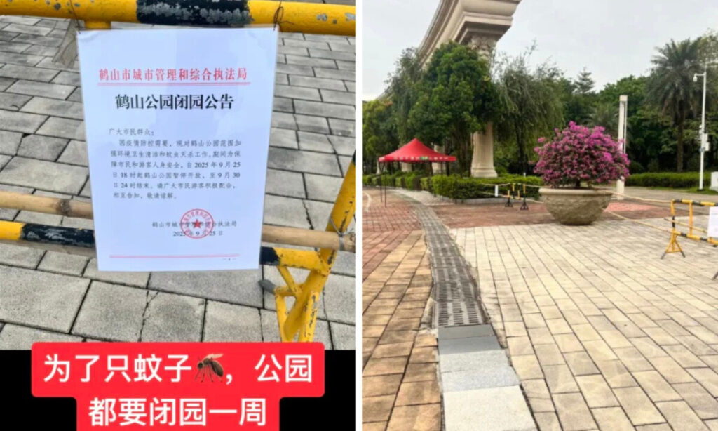 蚊の駆除対策で厳しい統制措置を取る広東当局、2025年9月(映像よりスクリーンショット/合成画像)