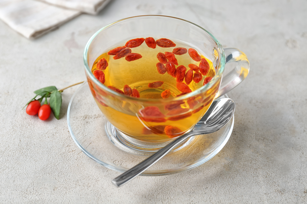 ①クコと菊花のお茶:夜更かしで目が疲れている人に