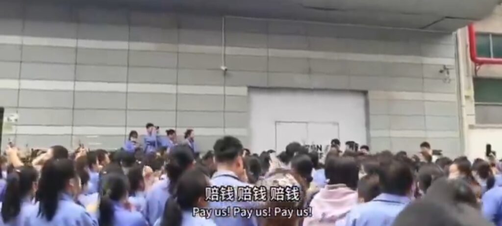 従業員による抗議が続く現場の様子、2025年12月5日、広東省深圳市。(映像よりスクリーンショット)