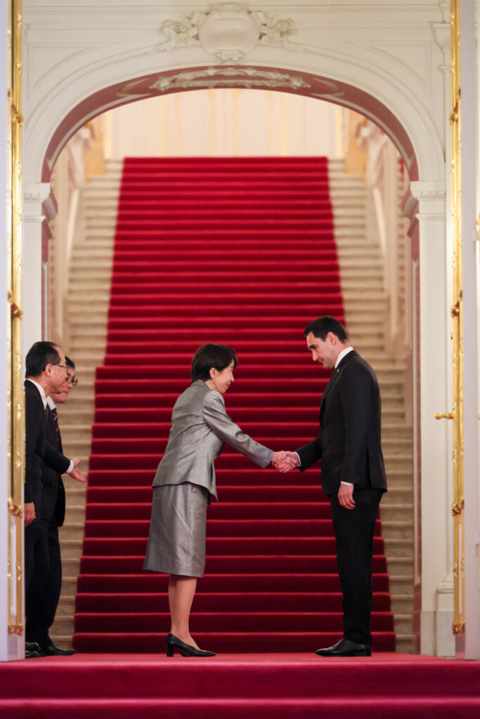 ベルディムハメドフ・トルクメニスタン大統領を出迎える高市総理(出典:首相官邸ウェブサイト)