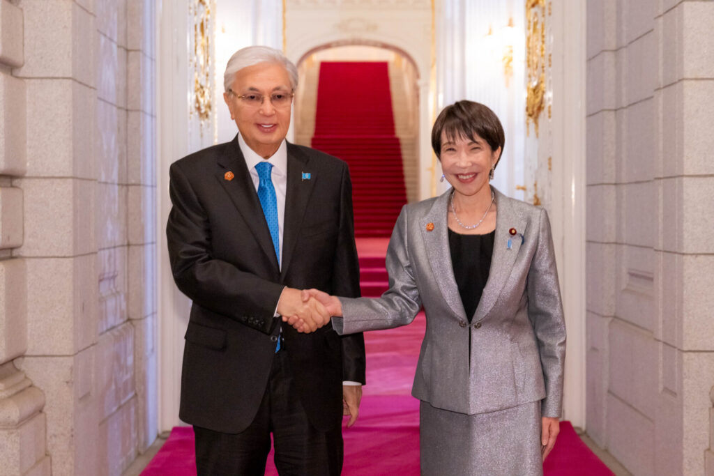 トカエフ・カザフスタン共和国大統領を出迎える高市総理(出典:首相官邸ウェブサイト)