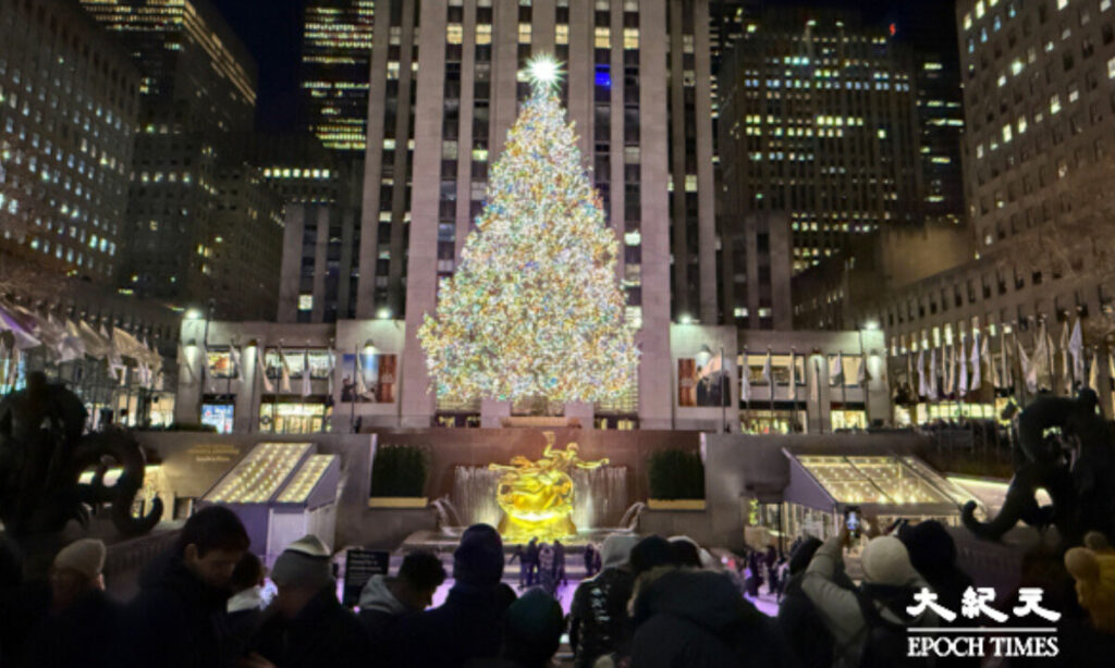 ロックフェラー・センターに設置されたクリスマスツリー。2025年、米ニューヨーク。(曾蓮/大紀元)