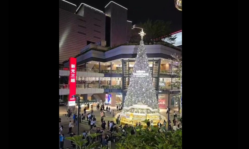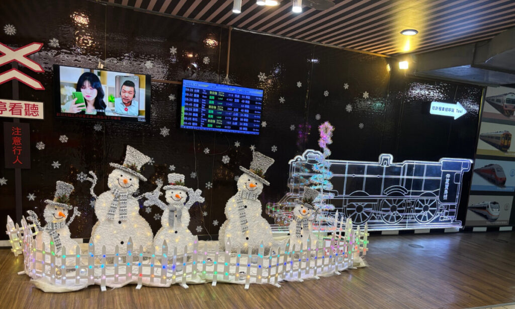 屏東駅前に設置された主灯「星願聖誕樹」。2025年11月28日、台湾・屏東県屏東駅。(簡惠敏/大紀元)