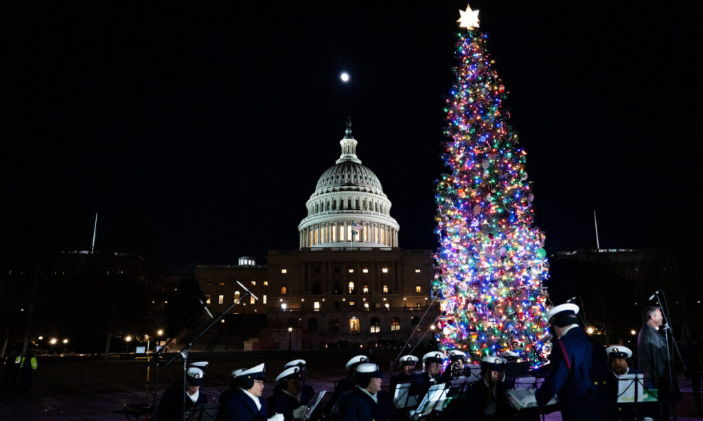 米連邦議会議事堂前で行われたクリスマスツリー点灯式。2025年12月2日、ワシントンD.C.。(Madalina Kilroy/英文大紀元駐白宮記者)