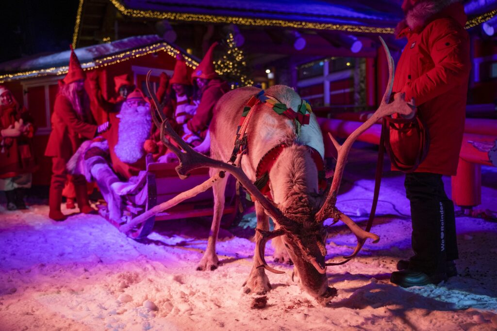 サンタクロースが出発の準備をする様子。2025年12月23日、フィンランド・ラップランド地方のサンタクロース村。(Laura Haapamäki/Lehtikuva/AFP via Getty Images)