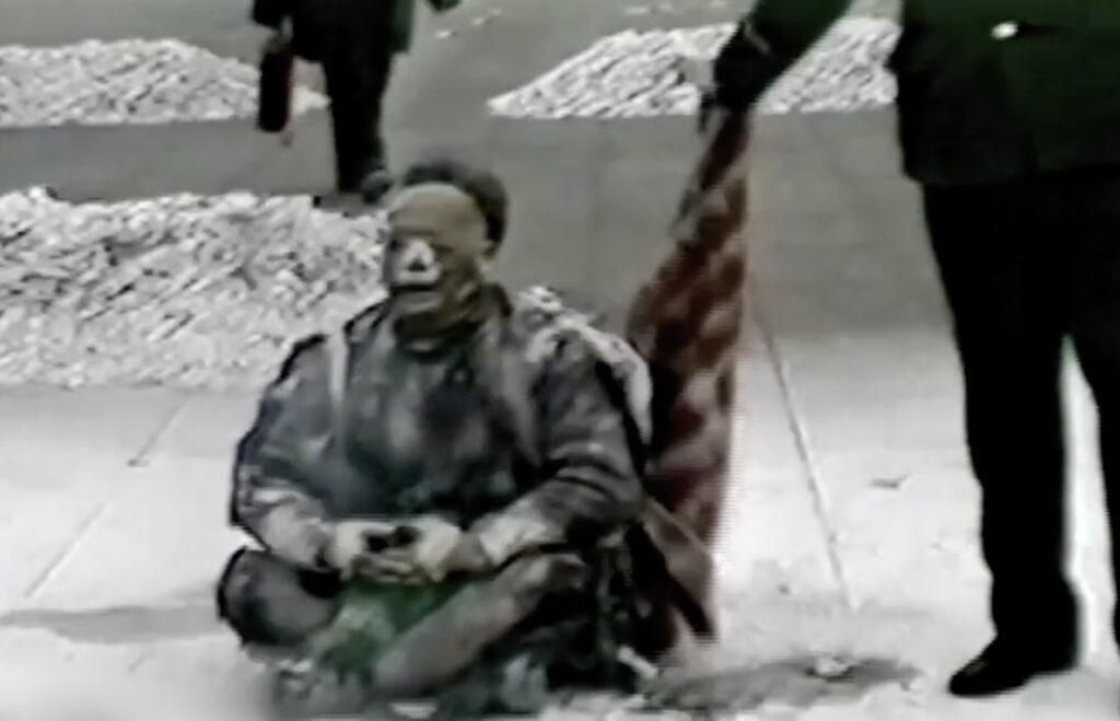 CCTVの映像では、「焼身自殺した」とされた男性の王進東が炎に包まれながらも動かず座禅を組み、スローガンを叫んでいた。彼は全身に深刻な火傷を負っていたはずだが、最も燃えやすい髪の毛は無傷で、両脚の間に挟んでいたガソリンを入れるためのプラスチックボトルも溶けずに残っていた。