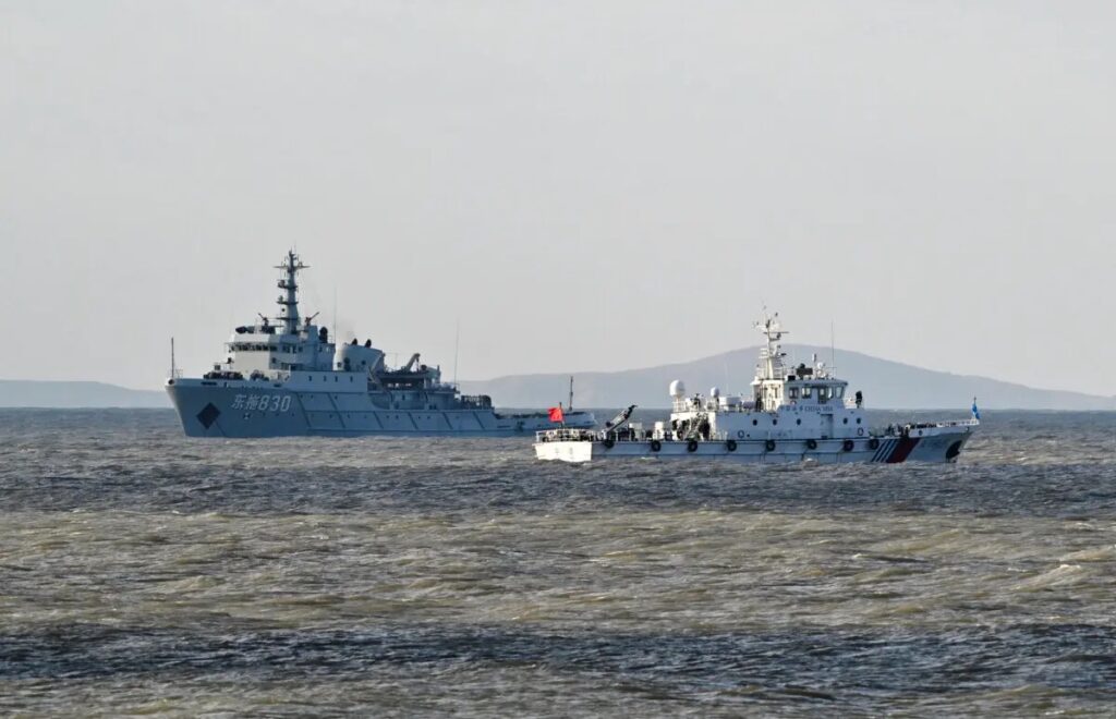 2025年12月30日、中国福建省東部の台湾に最も近い平潭島で人民解放軍が軍事演習を行う中、中国の艦船が巡視している(アデック・ベリー/AFP via Getty Images)