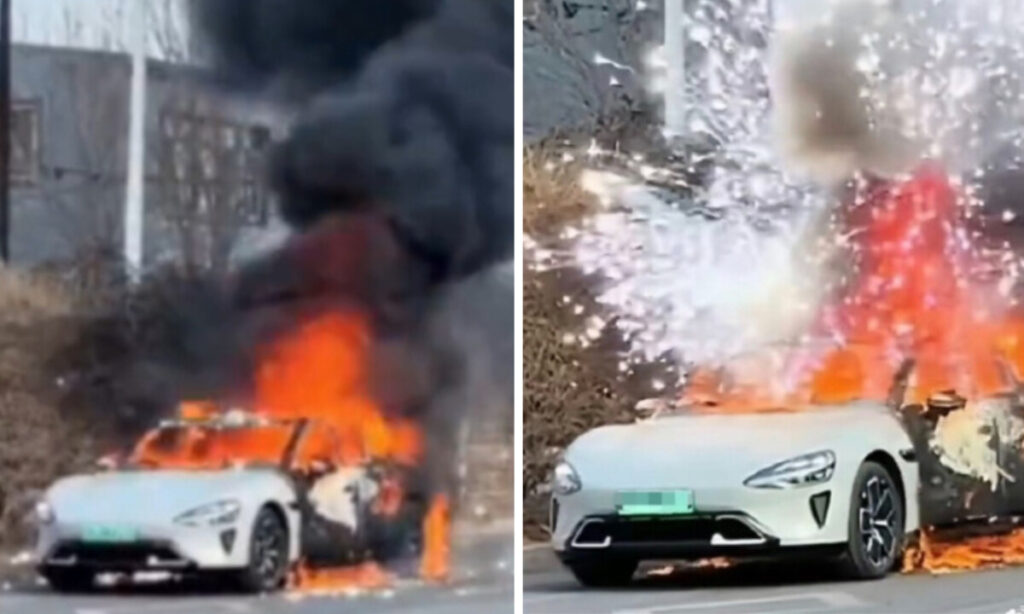 2月1日、遼寧省営口市で、同国スマートフォン大手のシャオミ(小米)が販売する電気自動車「SU7」が、充電を終えた直後に突然炎上した。