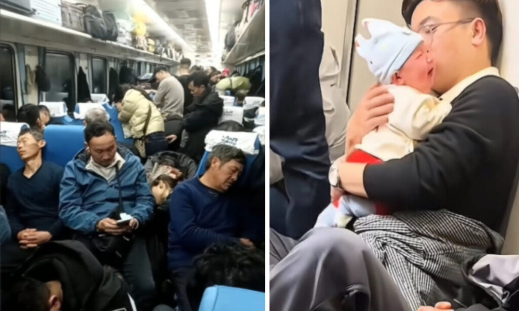 車内は通路まで人で埋まり、床に座る乗客の姿も見られる。赤ちゃんを抱えた家族も少なくない。座席はすべて満席で、発売と同時に売り切れる便もあるという。