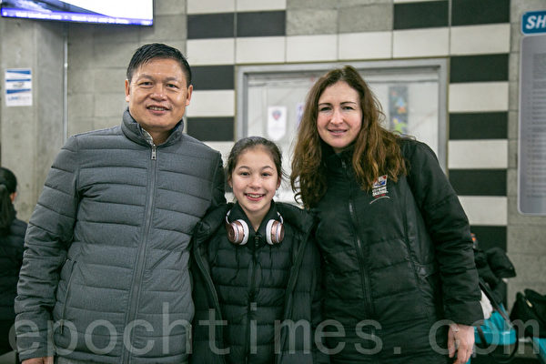 2019年全米フィギュアスケート選手権女子優勝者のアリサ・リュウ選手(中央)と父の劉俊氏、コーチのリペツキー劉俊(右)(劉俊氏提供)