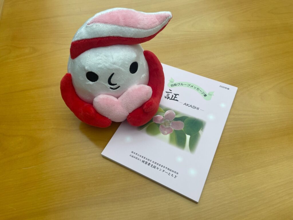 犯罪被害に遭われた方々のメッセージ集「証」とシンボルマークの「ギュっとちゃん」(出典:高市早苗公式X)