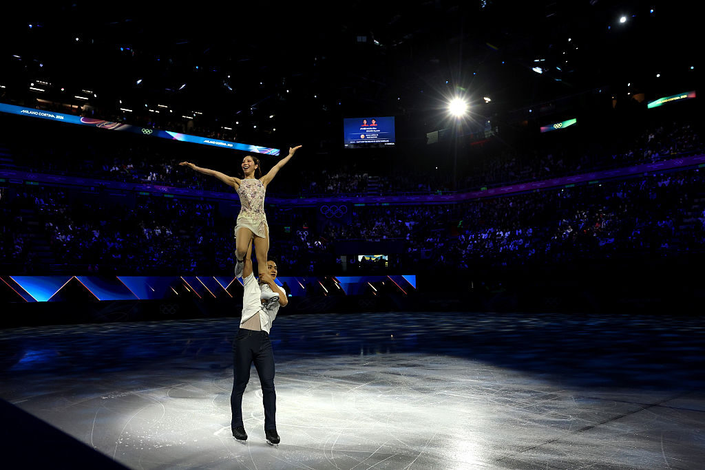 イタリア・ミラノ – 2月16日:2026年ミラノ・コルティナ冬季オリンピック競技大会10日目、ペアスケート・フリースケーティング競技でのチームジャパンの三浦里久選手とパートナーの木原竜一選手(Photo by Joosep Martinson/Getty Images)