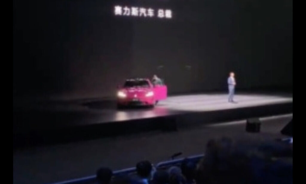 この日発表したのは、尚界Z7、尚界Z7T、問界M6の3車種。だが、順番に退場していくはずの流れの中で、ピンク色の尚界Z7だけがなぜか舞台中央にぽつんと残された。