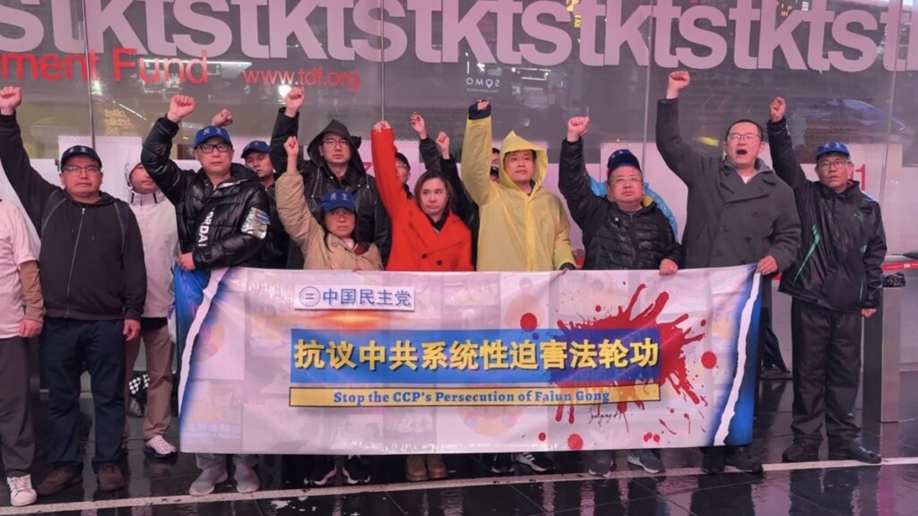 4月25日夜、海外を拠点とする民主化団体中国民主党は、ニューヨークのタイムズスクエアで法輪功への連帯を示す集会を開き、中国共産党による法輪功学習者への迫害停止を訴え、信仰の自由を求めて声を上げた。