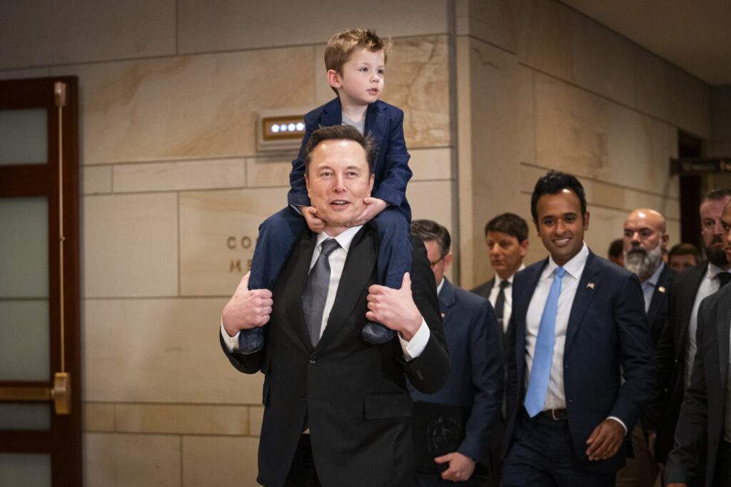イーロン・マスク氏が米政府効率部リーダーを退任。右目のアザが話題となるも、息子との遊びでできたと明かし会場を和ませた。